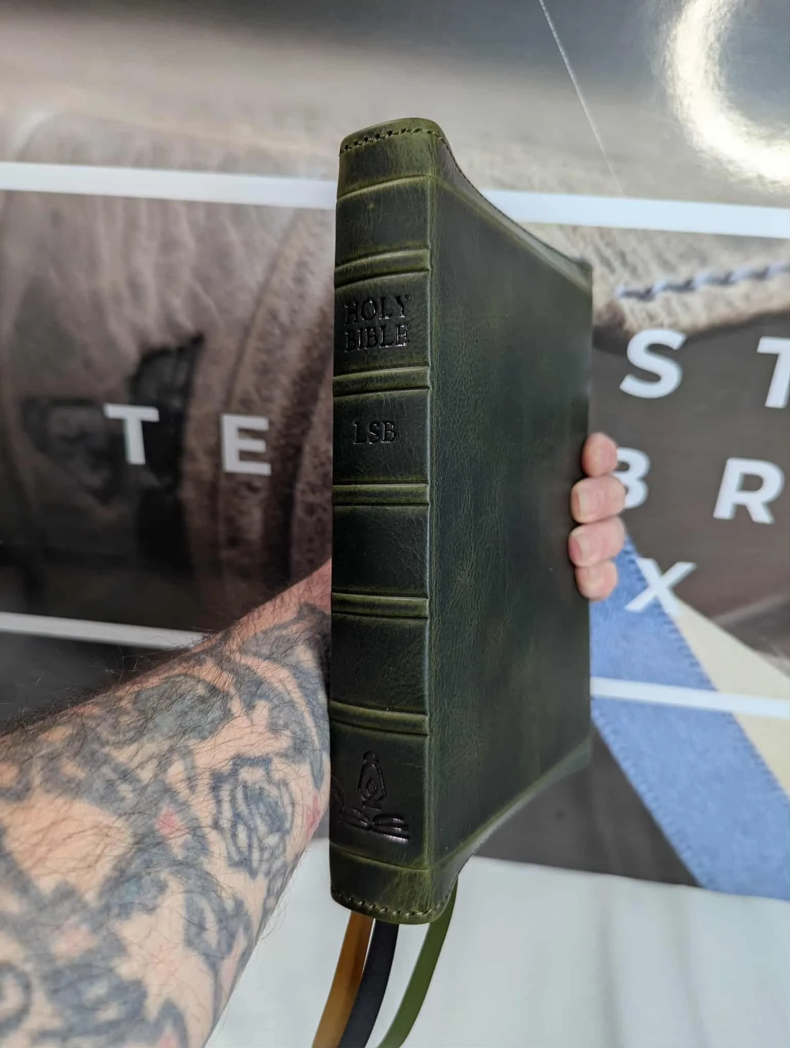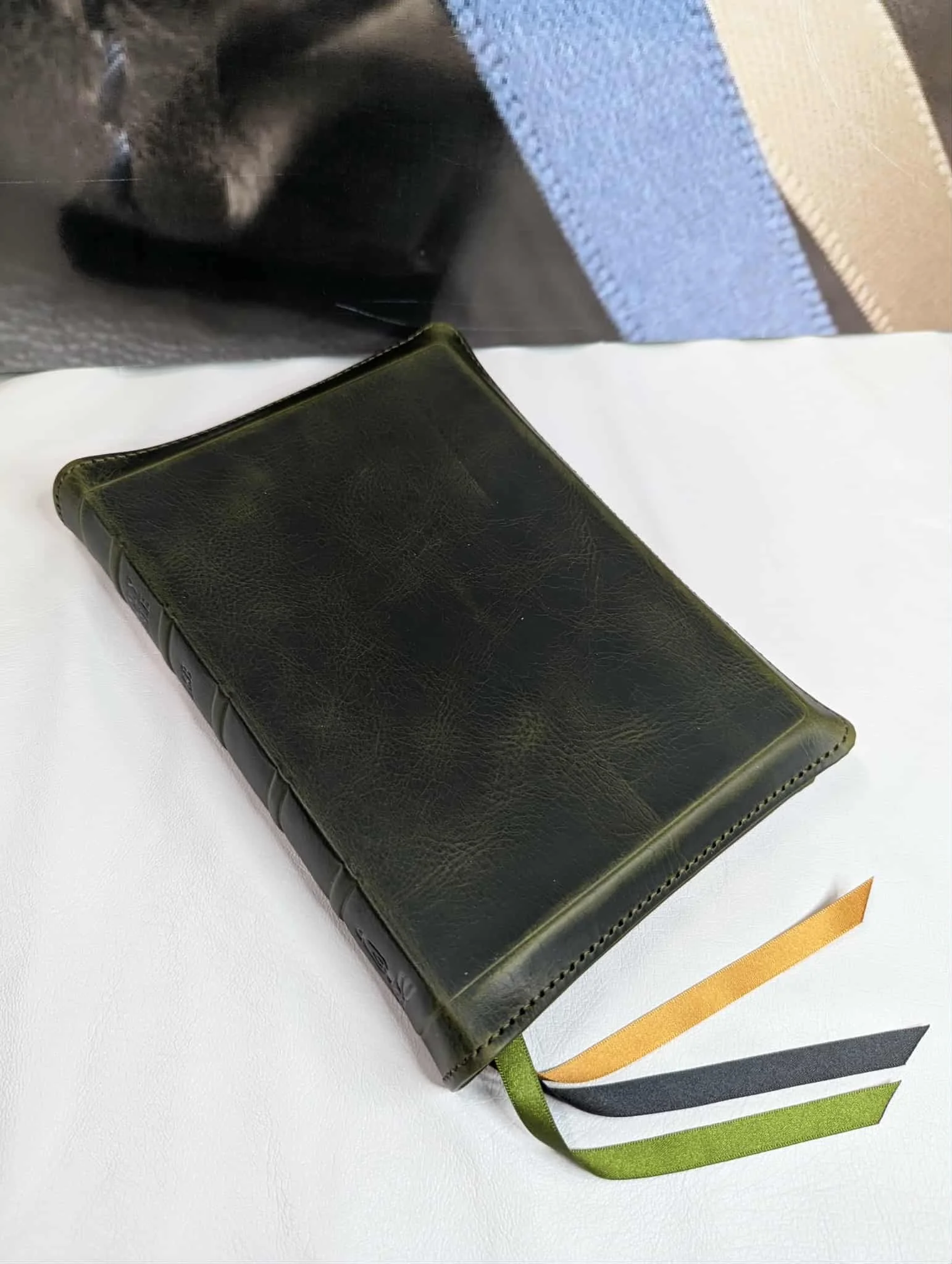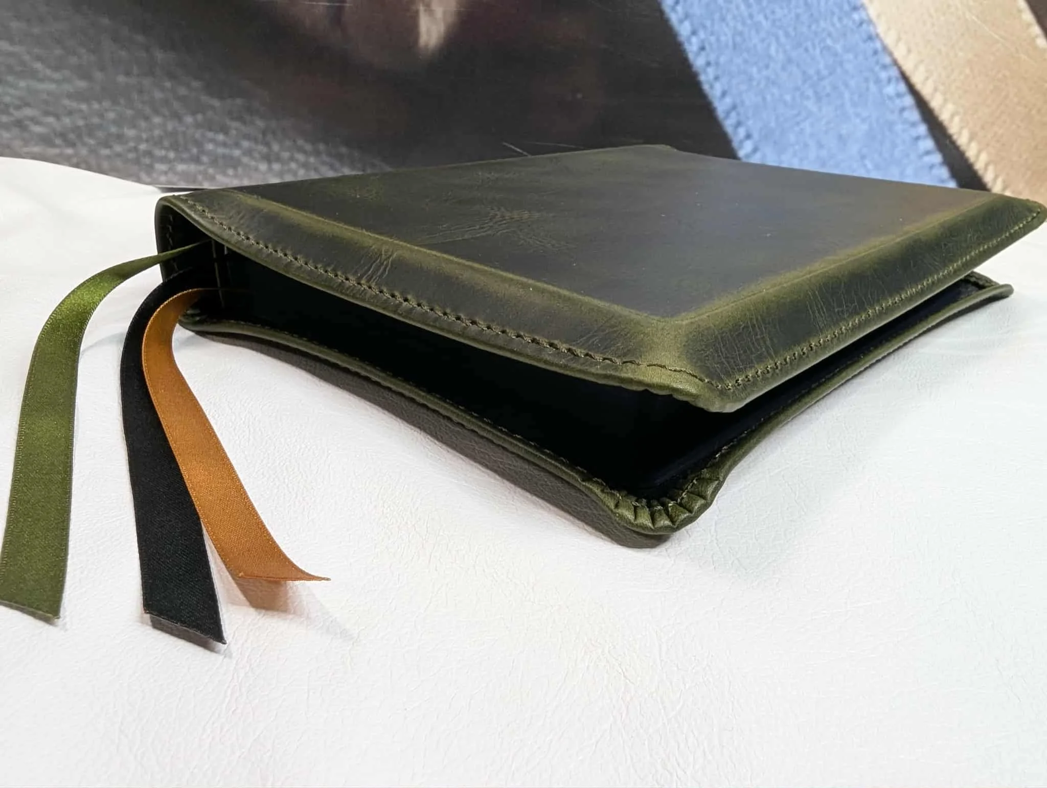 Legacy Standard Bible’s new handy size Inside Column Reference rebound in Olive Green waxy pullup cowhide from the Badalassi Carlo tannery.